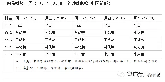 摘要中国富豪的前五位排名中,王健林的排名保持在前一周的第三位。前五位排名为马云、李彦宏、王健林、马化腾、李河君排名。世界排名方面,卡洛斯不敌巴菲特,世界排名降至第三位。
