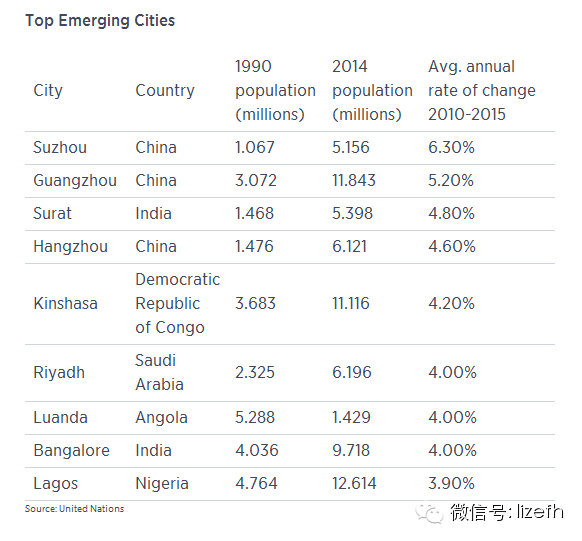 据上述联合国报告称,中国很多人口增速最快的城市都是中国的省会城市或者在经济增速最快地区的大城市。这些城市正拉动整个世界的经济增长。